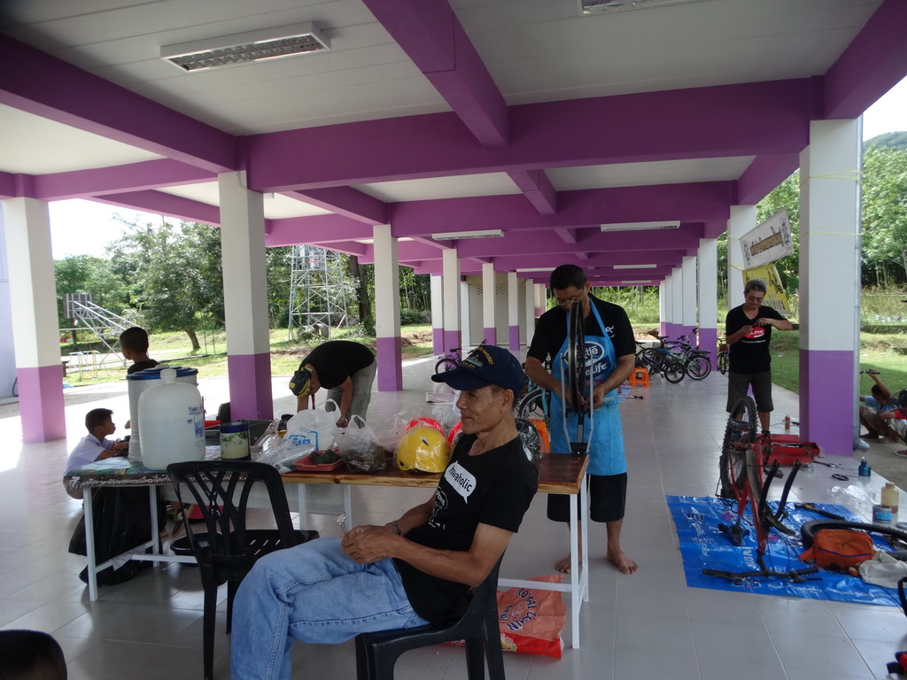 - ซ่อมจักรยานให้นักเรียน โดย เตรียมอะไหล่ที่มีอยู่ไปด้วย พบคันไหนที่ซ่อมได้วันนั้นก็ซ่อมเลย ถ้าอะไหล่ไม่พอค่อยนัดมาใหม่
